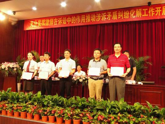 2011年7月12日下午,扬州市中级人民法院和扬州市司法局在邗江区法院召开了“充分发挥律师在诉讼中的作用推动涉诉矛盾纠纷化解工作开展推进大会”,会上,我所宗宏根律师作了经验介绍,并被评为“先进个人”,受到表彰。
